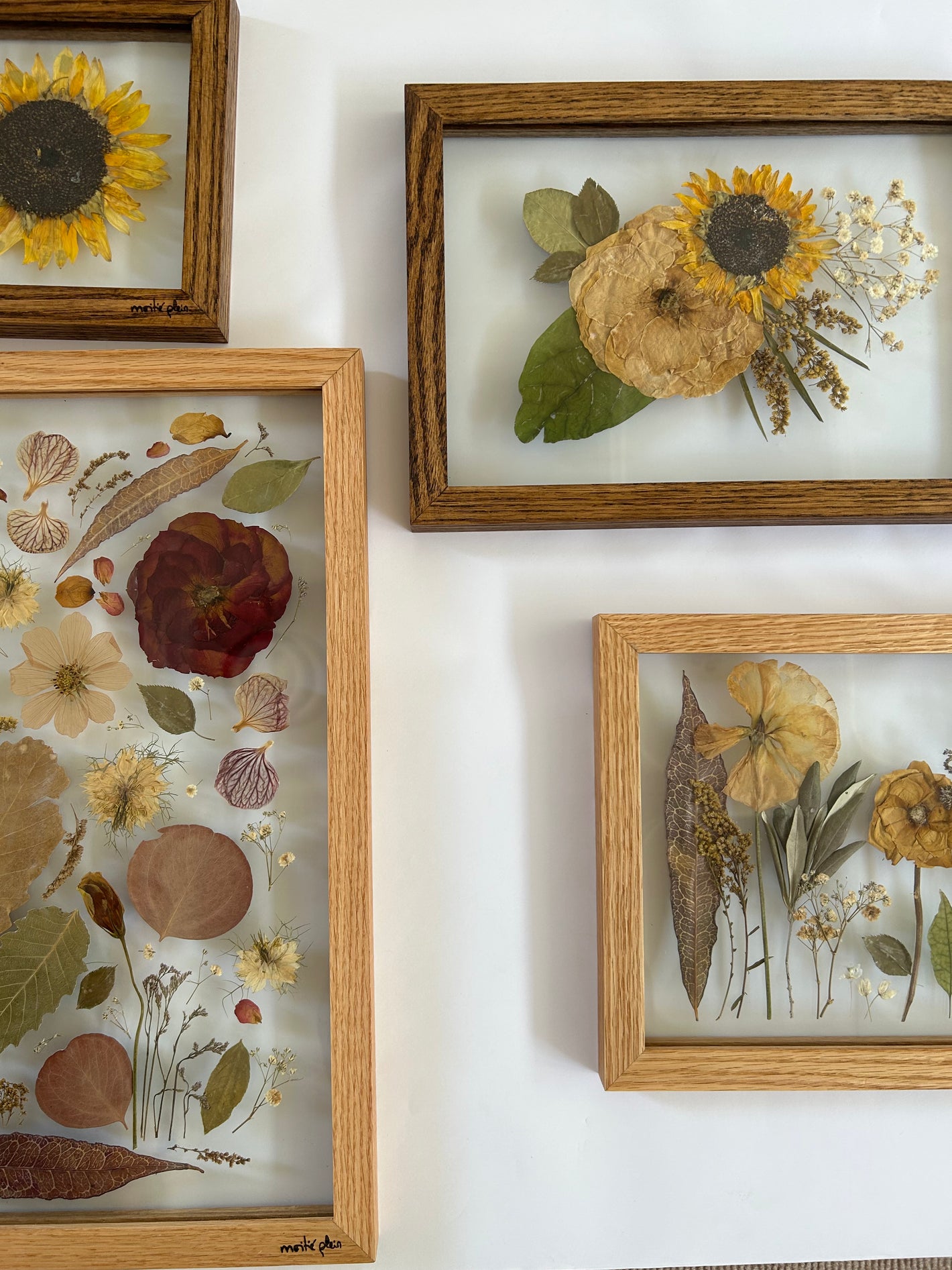 • Designed and handcrafted by our workshop for Moitie Plein, these custom rectangular and square frames made of solid French oak feature double glass panels to showcase pressed botanical elements.