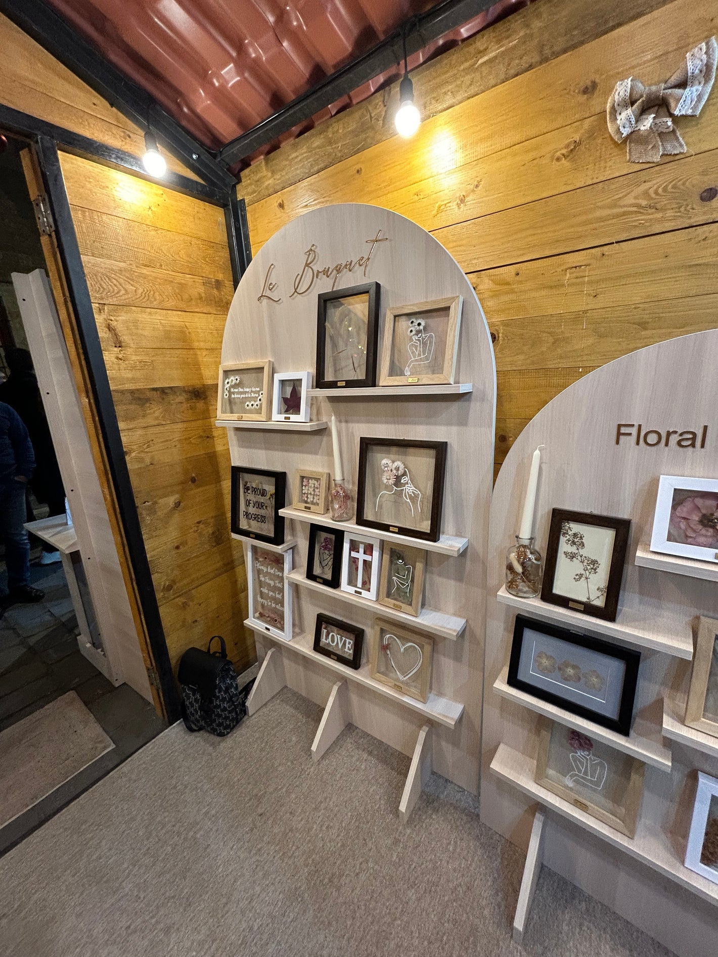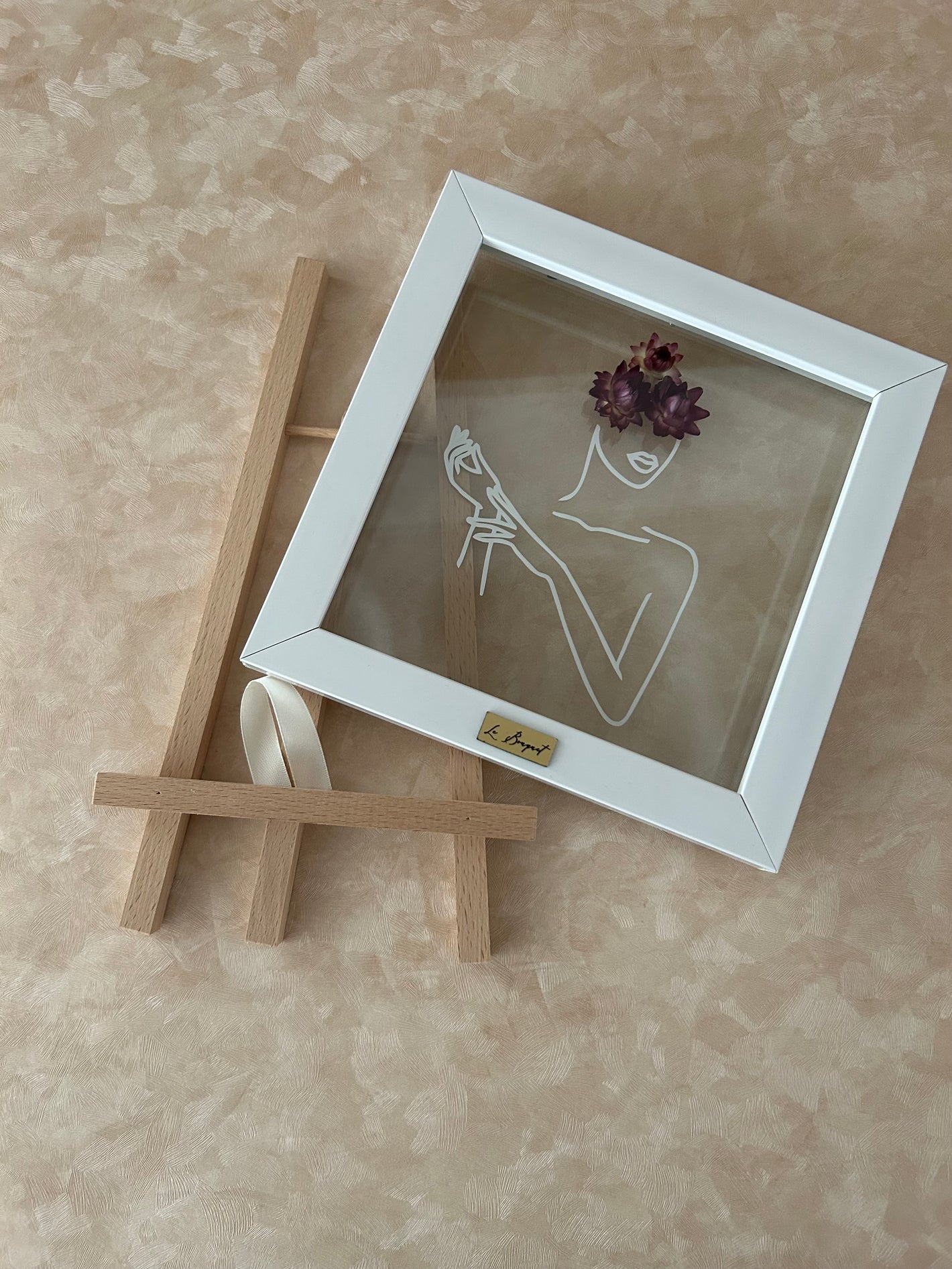 • We designed and built bespoke wooden stands for Le Bouquet to elegantly present their handcrafted frames. The stands are fully handmade and include and elegant ribbon that complements the branding of Le Bouquet.