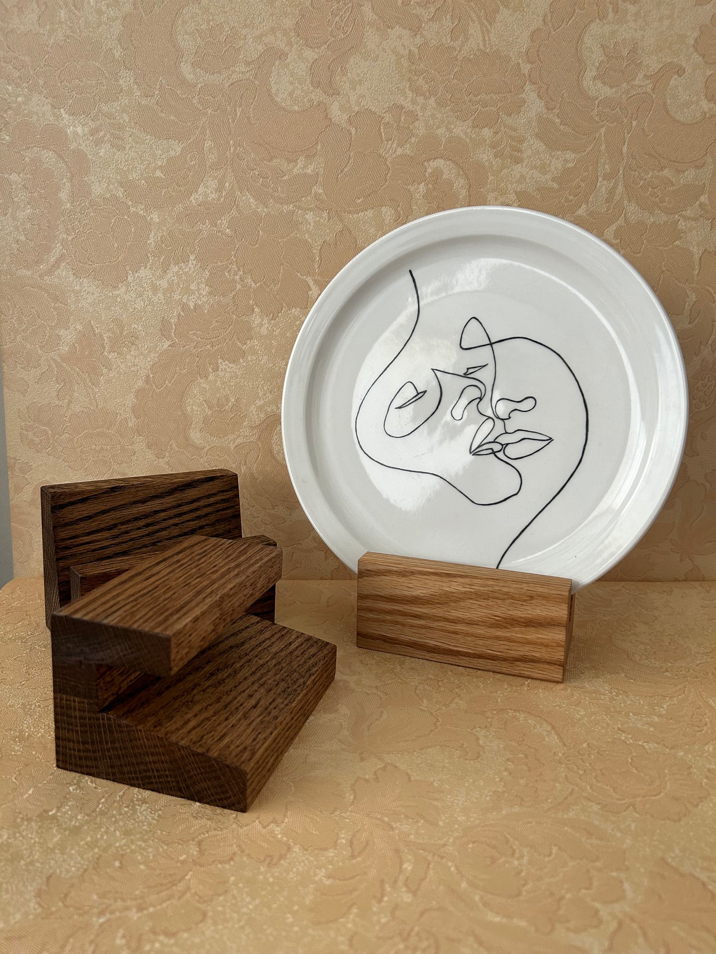 • Designed by Parel Home and executed at our atelier. The plate stands compliment the minimalistic designs drawn on the plates and come in three different colors based on the request of the designer.