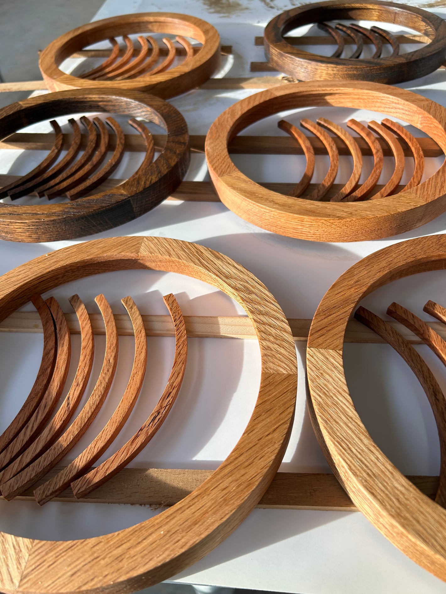 • Beautifully crafted circular frames made from solid French oak, featuring a distinctive design and execution method that has become a trademark often emulated by others. Each frame is designed to hold double glass panes, accommodating a thickness of up to 2 cm.